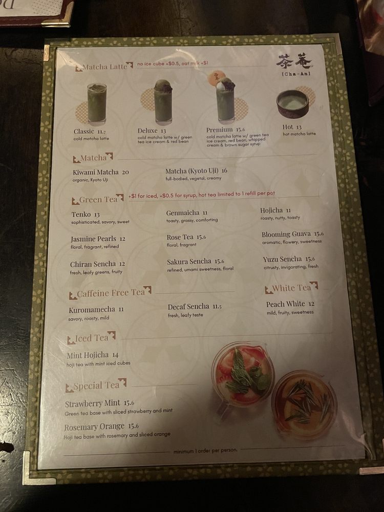 Located in New York's East Village, Cha-An is a charming tea room and dessert haven loved by many customers. The menu boasts a variety of matcha-infused desserts and premium teas, making it a top choice for those with a sweet tooth. Delight in the matcha tiramisu, known for its light texture and red bean accents, or indulge in the black sesame creme brulee for a unique twist. The mochi and dango dishes are also favorites among patrons, offering a stretchy texture and nutty flavors. With a cozy and intimate ambiance, Cha-An is perfect for a romantic date or a special occasion. While slightly pricey, the quality of the desserts and attentive service make it a worthwhile treat. Don't miss out on experiencing this Japanese-inspired gem in the heart of the city.